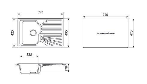 | Ширина мойки | 79.5 см |
