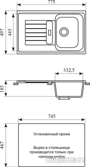 | Ширина мойки | 77.5 см |
