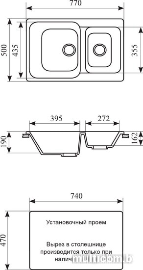 | Ширина мойки | 77 см |