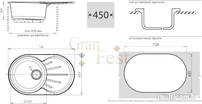 Кухонная мойка GranFest GF-R750L (светло-розовый)