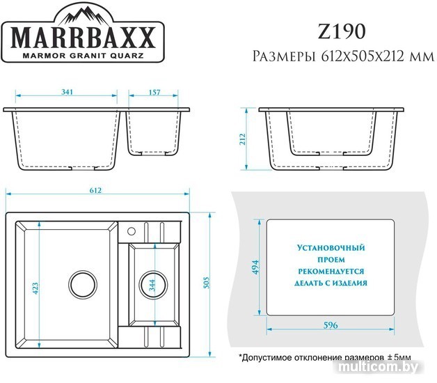| Глубина мойки | 50.5 см |