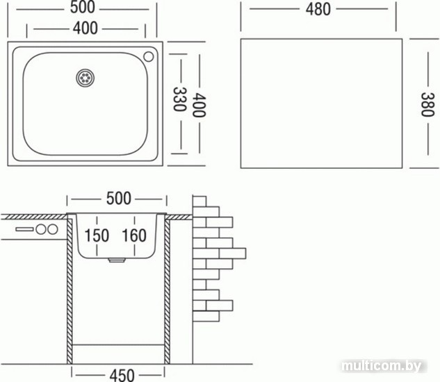 | Информация | Отверстие для смесителя слева от чаши.Поставляется в синей пленке. |