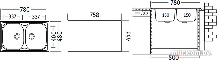 | Ширина мойки | 78 см |