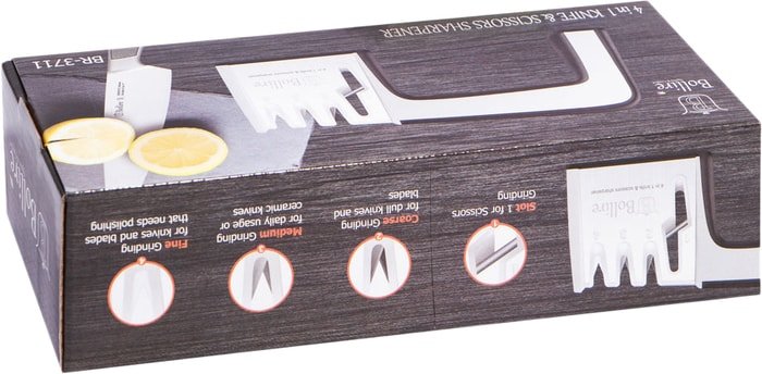 | Информация | Универсальная заточка для ножей и ножниц.1 слот - для заточки ножниц;2 слот - для заточки ножей из твердой стали;3 слот - для доводки ножей или заточки керамических ножей;4 слот - для ножей и лезвий, которые требуют полировки. |