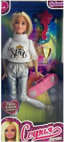 | Информация | Кукла София — танцор отличный подарок для вашей принцессы. Модница София одета в стильные серебристые брюки и светлый свитшот. Образ дополняют красивые крупные серьги. С такой модной куклой девочке будет интересно и весело играть: благодаря тому, что руки и ноги куклы подвижны, им можно придать любое положение. У Софии длинные красивые волосы, которые хозяйка куклы сможет заплетать в разные прически. Детально проработанный дизайн игрушки вдохновит девочку на новые игровые сюжеты. |