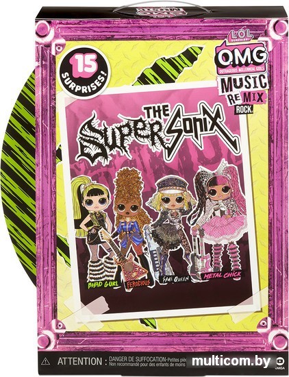 | Информация | Особенности: — 15 сюрпризов внутри упаковки; — снимаемая одежда и разнообразные аксессуары; — волосы прошиты, можно расчёсывать; — подвижные руки и ноги, за счёт чего кукла может принимать разные позы. Высота куклы: около 25.4 см. Материал: пластмасса, текстиль, полимерные материалы. В наборе: кукла, одежда, обувь, аксессуары. Прочувствуй настоящий рок, настоящий драйв с новой коллекцией кукол LOL Surprise! из серии OMG Music Remix Rock! Bhad Gurl обладает потрясающими чертами лица, красивыми, уложенными волосами и её собственным эпатажным рок-звёздным стилем. Bhad Gurl — участник Super Sonix, рок-группы, написавшей хит "I’m a Queen". Bhad Gurl в банде отвечает за ударные. Она виртуозно справляется с четырьмя барабанами на ударной установке, которая крепится у куклы на талии. А ещё у Frame Queen неповторимый образ. Только посмотрите на нееё Салатовые волосы, яркий макияж, мини-юбка, колготы в сетку и невероятные меховые сапоги! В набор входит 15 сюрпризов, включая крутой инструмент, модный наряд, 1 пару обуви, обувную коробку, аксессуары, шляпную коробку, расчёску для волос, подставку для куклы, полноразмерную пластинку, лирический журнал. |