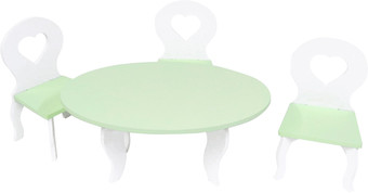 | Информация | Набор мебели для кукол "Шик": стол + стулья, цвет: белый/салатовый - отличный подарок для любой малышки. Игрушка порадует любую девочку от 3 лет. Отличительные особенности: Набор мебели для кукол подходит для кукол от 25 до 45 см. В наборе идет круглый стол и три стульчика. Набор мебели для кукол подходит для сюжетно-ролевой игры в дочки-матери. Такие игры позволяют ребенку проявить свою фантазию, аккуратность, познакомиться с понятиями ответственности и заботы, развить мелкую моторику рук и почувствовать себя в роли заботливой мамы. Поставляется в разобранном виде, прилагается инструкция по сборке. |