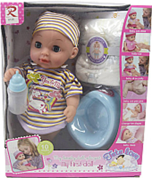 | Комплектация | горшок, бутылочка, подгузник, одежда/обувь, пустышка |