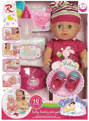 | Комплектация | горшок, бутылочка, одежда, пустышка, обувь, памперс |