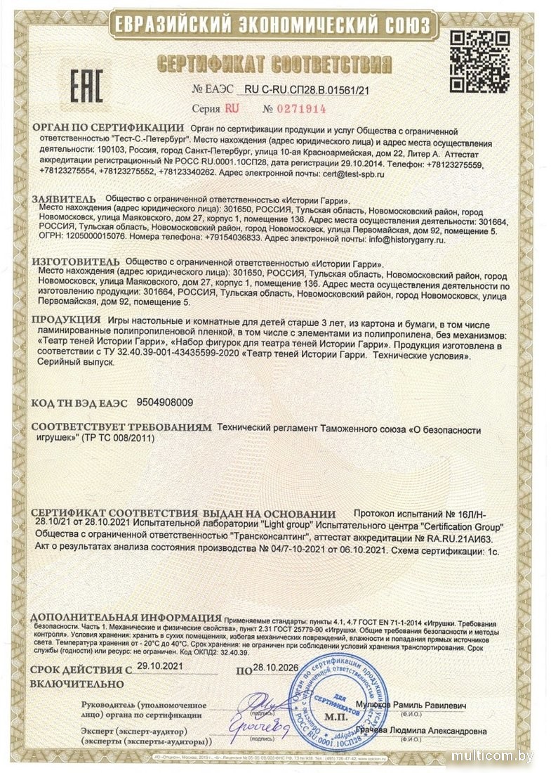 Поставщик в РБ: ООО "Триовист" юр.адрес: 220020, Минск, пр. Победителей, 100, оф. 203