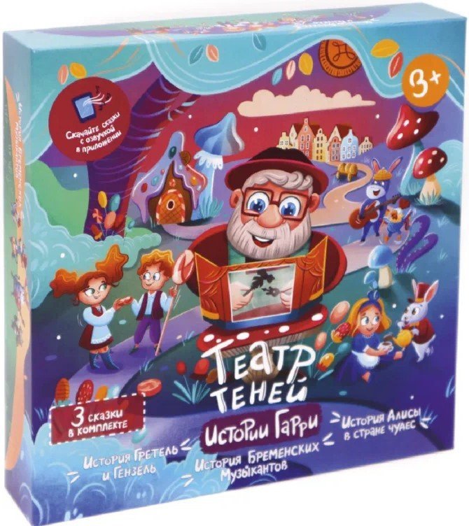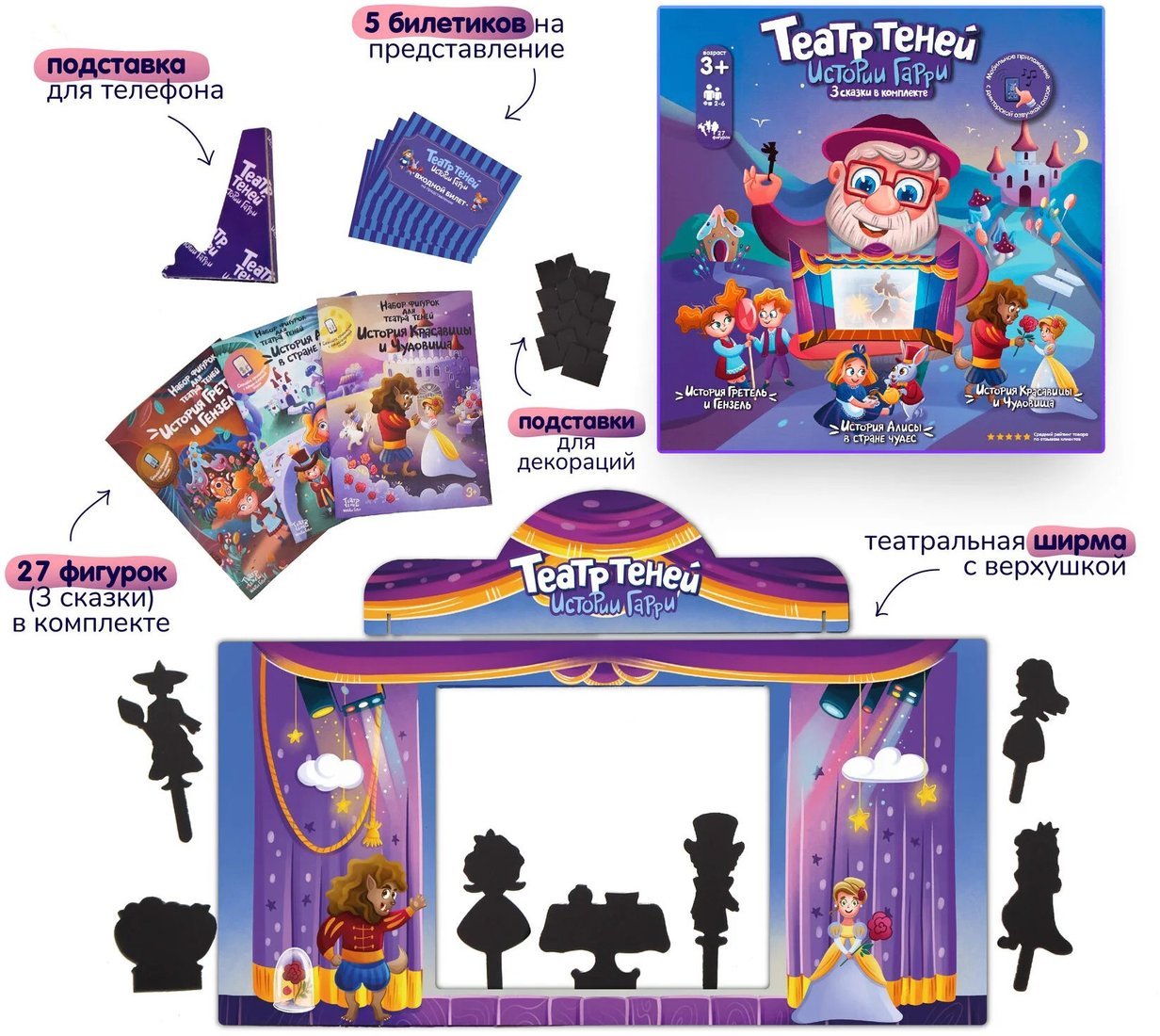 | Комплектация | фигурки для трех сказок, театральная ширма, подставка под телефон, билеты в театр, советы и правила |