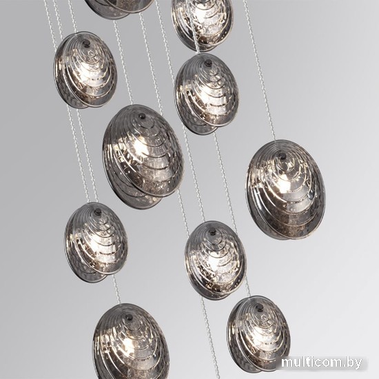 | Информация | ? Линия «Mussels» представляет собой широкий ассортимент светильников с рассеивателем в виде полураскрытой ракушки. ? Природная текстура стекла в сочетании с модным дымчатым цветом и элегантным прозрачным витым проводом создают трендовый образ светильника. ? Дуэт из плафонов 2-х размеров позволяет создавать гармоничные композиции в люстрах на 7, 8 и 11 подвесов. |