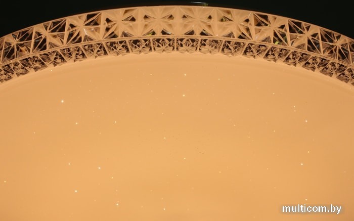 | Информация | Люстра потолочная светодиодная, цвет покрытия - белый с эффектом звездного неба. В люстре установлена светодиодная лампа мощностью 60 Вт. Температура свечения регулируется в диапазоне от 3000К до 6400К (от теплого белого до дневного света). Рекомендуемая площадь освещения 6м?. Люстра управляется с помощью пульта дистанционного управления со встроенным диммером. В комплекте: пульт ДУ, гарантийный талон, схема сборки и крепежные саморезы. |