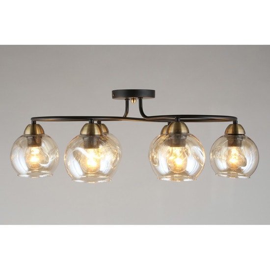 | Информация | Интересная форма и дизайн данной люстры. Аккуратные округлые плафоны из тонированного стекла, замечательно сочетаются с цветом покрытия основания - черный + бронза. Люстра выполнена в стиле LOFT. Соответственно, освещение в интерьере становится одной из главных составляющих дизайна. Но нельзя и не отметить, что люстра выполняет и роль декорации. Таким образом, люстру можно расположить и в гостевой комнате, и в рабочем кабинете, и в столовой. Способ крепления: монтажная планка. |