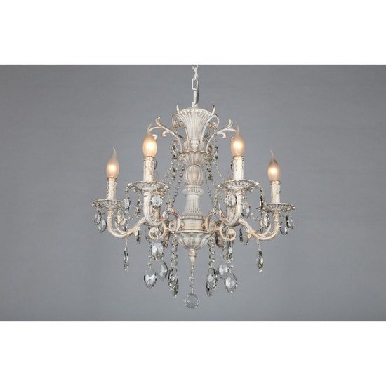 | Информация | Люстра подвесная металлическая, цвет покрытия - патина беленая. Люстра выполнена в классическом стиле, декорирована хрустальными подвесками. В люстре используется 6 ламп накаливания по 60 Ватт. Рекомендуемая площадь освещения 18 кв.м. Если использовать энергосберегающие лампы, можно увеличить площадь освещения. Есть возможность регулировки высоты люстры за счёт цепи. Способ крепления: вешается на крючок. |