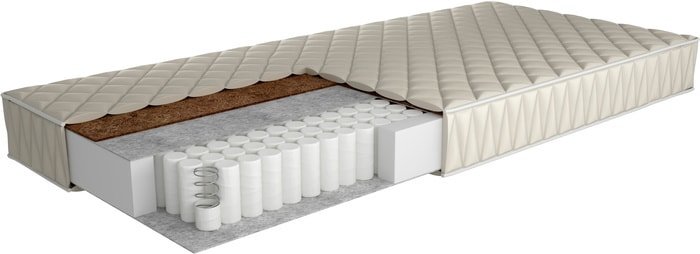 | Информация | Асимметричный матрас на основе блока независимых пружин, который равномерно распределяет вес тела, снимает нагрузку с позвоночника и способствует правильному положению спины во время сна. С одной стороны используется кокосовое волокно, которое придает матрасу жесткость. С другой стороны «FiberTerm», что придает матрасу среднюю жесткость и оптимальный уровень комфорта. |