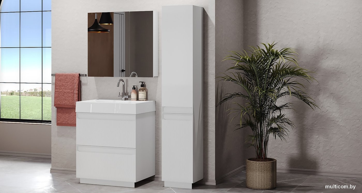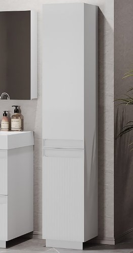 | Информация | -Ключевые характеристики Напольный шкаф-пенал для ванной комнаты с размерами 31.2 на 30.3 на 186.3 см, выполненный из ЛДСП и МДФ с матовой эмалью белого цвета. Модель оснащена стеклянными полками толщиной 4 мм и удобной интегрированной ручкой для открывания дверцы вправо. Плавное закрывание обеспечивается доводчиками на петлях. -Преимущества и отличия Отсутствие ножек и наличие окрашенного в цвет изделия подиума создают эффект парящей мебели и обеспечивают устойчивость. Матовая эмаль с обеих сторон фасадов увеличивает срок службы и придает изделию элегантный внешний вид. Вертикальные линии на фасаде подчеркивают стиль и уникальность дизайна. -Практичность Органайзер пространства внутри шкафа помогает рационально использовать внутренний объем. Напольная установка позволяет легко разместить шкаф в ванной комнате без дополнительных креплений. Модель не предназначена для установки со стиральной машиной и не имеет корзины для белья или выдвижных ящиков. -Уникальность Использование стеклянных полок толщиной 4 мм придает изделию легкость и изящность, а интегрированная ручка обеспечивает комфортное открытие дверей. Коллекция позволяет создавать гармоничные интерьеры благодаря сочетанию с тумбами из той же серии. Читать дальше |