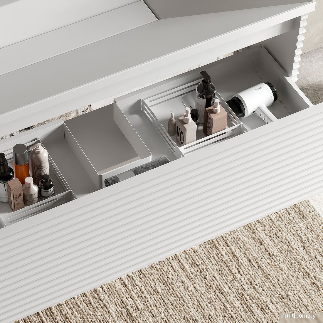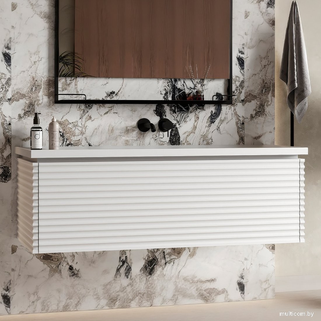 | Информация | -Ключевые характеристики Подвесная тумба под умывальник шириной 100 см из коллекции Челси сочетает стиль и функциональность. Изготовлена из высококачественного МДФ с матовой эмалью, что обеспечивает влагостойкость и долговечность. Имеет один вместительный выдвижной ящик с металлическими боковинами и обводом сифона из стали толщиной 1 мм. -Преимущества и отличия Модель оснащена инновационным механизмом Push-to-Open, который позволяет открывать ящик легким нажатием на фасад без ручек, что повышает гигиеничность и безопасность. Полное выдвижение ящика с синхронизацией обеспечивает удобный доступ к содержимому и плавность работы. -Практичность Универсальная установка подвесного типа позволяет легко интегрировать тумбу в интерьер ванной комнаты. Совместима с умывальником Belux Фаворит Ф-1000. Органайзер пространства внутри ящика помогает рационально использовать внутренний объем. -Уникальность Эксклюзивные фасады с глубокой горизонтальной фрезеровкой подчеркивают элегантность и уникальность изделия. Пятислойное покрытие эмалью повышает влагостойкость и срок службы, а отсутствие ручек и использование Push-to-Open выделяют модель в премиальном сегменте мебели для ванных комнат. Читать дальше |