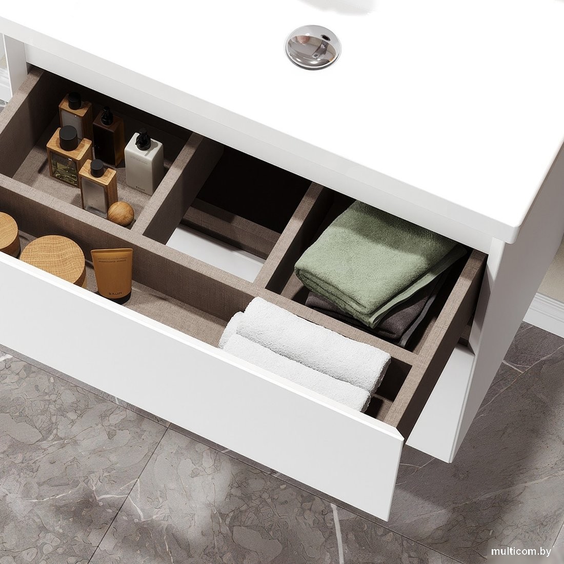 | Информация | -Ключевые характеристики Подвесная тумба под умывальник выполнена в современном лаконичном дизайне с четкими геометрическими линиями. Ширина изделия составляет 76.5 см, глубина 41.3 см, высота 59 см. Корпус и фасады изготовлены из влагостойкого МДФ и ЛДСП с глянцевым покрытием, что обеспечивает долговечность и легкость ухода. -Преимущества и отличия Фасады и боковины тумбы скошены под углом 45 градусов, что придает мебели утонченный и стильный внешний вид, а также улучшает эргономику. Наличие двух выдвижных ящиков с доводчиками и органайзером пространства позволяет удобно хранить необходимые предметы и поддерживать порядок. -Практичность Модель предназначена для подвесного монтажа, что облегчает уборку пола и создает ощущение легкости интерьера. Тумба совместима с умывальником Керамин Тобаго 80, что упрощает подбор комплектующих. В комплект входят крепежи для удобной установки. -Уникальность Использование высококачественного МДФ с глянцевым покрытием и оригинальное дизайнерское решение с фасадами, скошенными под 45 градусов, выделяют эту модель среди аналогичных изделий. Такая конструкция сочетает эстетичность и функциональность, создавая современный и воздушный интерьер ванной комнаты. Читать дальше |