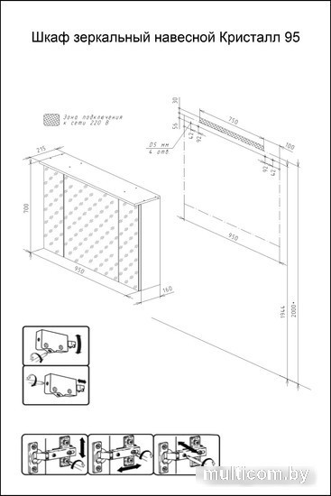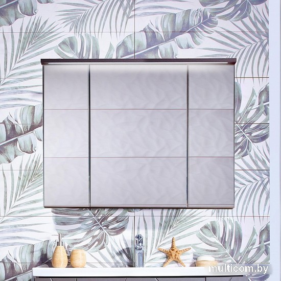 | Информация | ? Шкаф с зеркалом для ванной Бриклаер Кристалл 95 (софт графит) имеет 2 распашные дверцы по бокам и 1 центральная дверь посередине. ? За каждой дверцей имеется по 2 стеклянные съемные полочки. ? Подсветка светодиодная встроенная в корпус крыши шкафчика и спрятана в пластиковый короб. |
