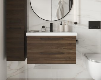 | Информация | -Ключевые характеристики Подвесная тумба под умывальник с размерами 67.6 на 44.5 на 44.8 см и весом 21.12 кг предназначена для ванной комнаты любого стиля. Изготовлена из влагостойких материалов ЛДСП и МДФ с матовым покрытием, что обеспечивает долговечность и устойчивость к влажности и перепадам температур. -Преимущества и отличия Модель оснащена удобными выдвижными ящиками с доводчиками и органайзером пространства, что повышает функциональность и комфорт использования. Подвесной монтаж облегчает уборку и визуально расширяет пространство ванной комнаты. -Практичность Поверхность тумбы легко очищается благодаря нескольким слоям эмали, что делает её идеальной для повседневного использования в условиях повышенной влажности. Универсальная модификация позволяет подобрать совместимый умывальник Como 70 (не входит в комплект). -Уникальность Использование 100% влагостойких материалов и качественной фурнитуры черного цвета без патинирования выделяет изделие среди аналогов, обеспечивая надежность и современный минималистичный дизайн. Читать дальше |