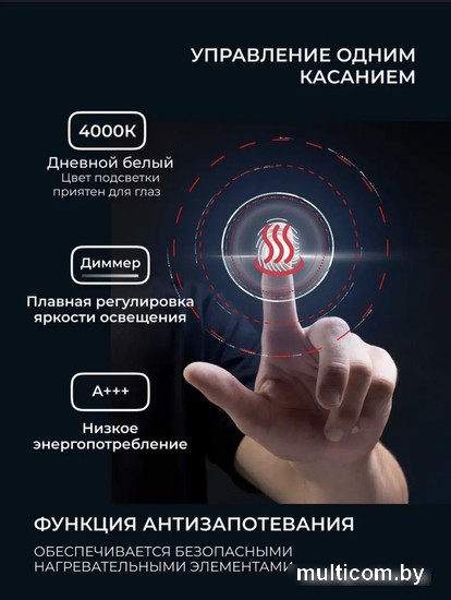 | Функциональные особенности | подогрев (антизапотеватель), сенсорное управление, регулировка яркости освещения |