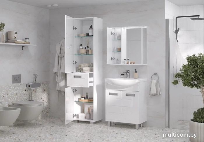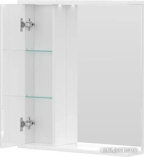 | Информация | Шкаф с зеркалом с двумя стеклянными полками за распашной дверцей. Петли оснащены доводчиками. Фасад зеркального шкафа изготовлена из МДФ и облицована глянцевой пленкой ПВХ. Шкаф с зеркалом оснащено встроенной светодиодной подсветкой, электрической розеткой и выключателем. Шкафчик открывается при помощи интегрированной ручки. |
