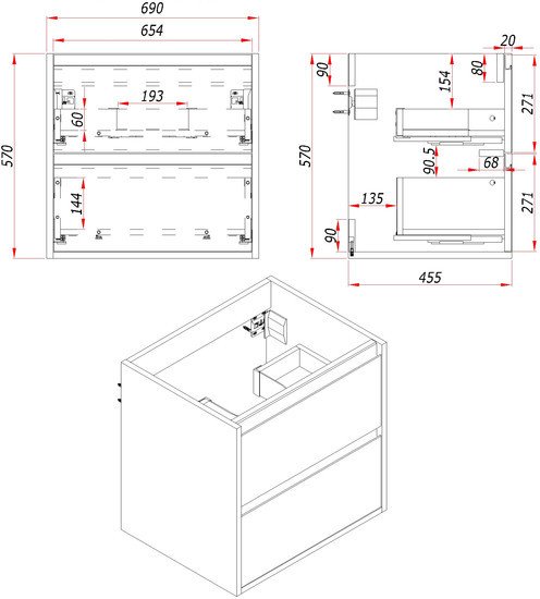 | Под умывальник шириной | 70 см |