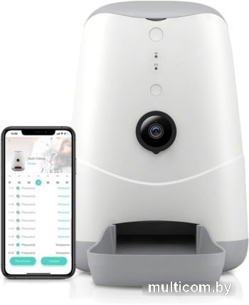| Особенности | - Встроенная видеокамера с функцией ночного видения (720P, широкий угол 120?)- Функция фото и записи видео через облако, двусторонняя аудиосвязь- Настраиваемый график автоматического кормления- 3,7-литровая емкость для сухого корма- Удаленное управление через приложение- Кнопка немедленной выдачи корма на корпусе и в приложении- Push-уведомления о работе устройства- Скрытый слот для внешнего аккумулятора для автономной работы |