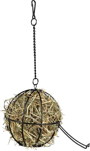 | Информация | Кормушка для грызунов "Шар"-используется для сена, травы и т.д.-подвесная-мотивирует животное к игре за еду в награду-защищает пищу от фекалий и мочи-с защитным кольцом, чтобы животное не застряло |