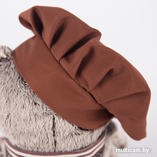| Информация | Басик-бариста в стильном фартуке из плотного хлопка в бело-коричневую полоску. На фартуке оригинальный принт с чашечкой кофе и кофейными зёрнами и надписью: Басик любит кофе. |