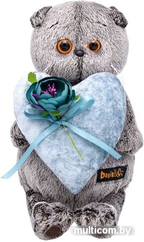 | Информация | Басик в лапках держит необыкновенно романтическое сердечко из мягкого бархата цвета голубого тумана, украшенного утончённой пышной розой необычного цвета океанской глубины. Розочка украшена атласной нежно-голубой лентой. |
