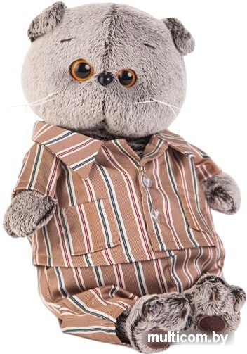 | Информация | Кот в модной шёлковой пижаме кофейного цвета в полоску. Пижама состоит из лёгкой курточки с кармашками и свободных штанишек. |