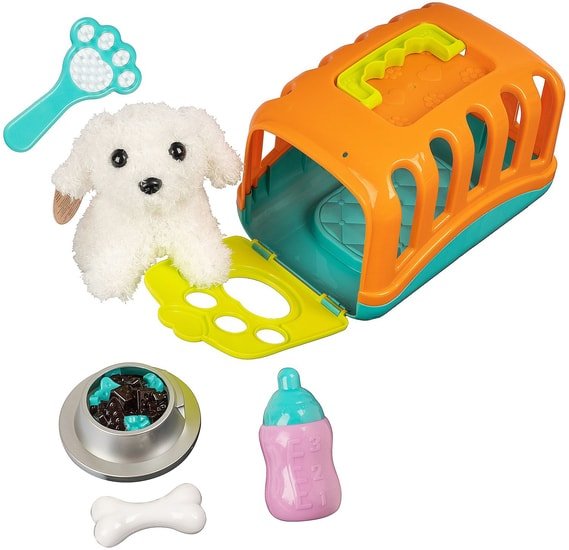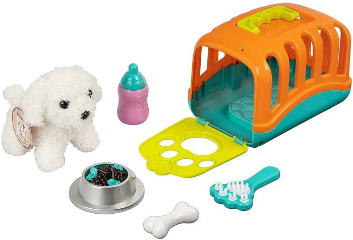 | Информация | Собака в пластиковой сумке-переноске. Собачка может лаять.В комплекте аксессуары: бутылочка, косточка, миска и расческа. Работает от батареек (батарейки в набор не входят). |