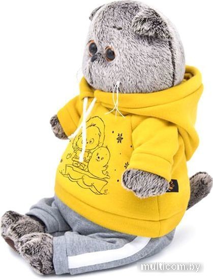 | Информация | Басик в уютном спортивном костюмчике. Модный свитшот с капюшоном цвета одуванчика из х/б футера с оригинальным принтом «Басик на севере» и штанишки из дымчатого футера с белыми лампасами. |
