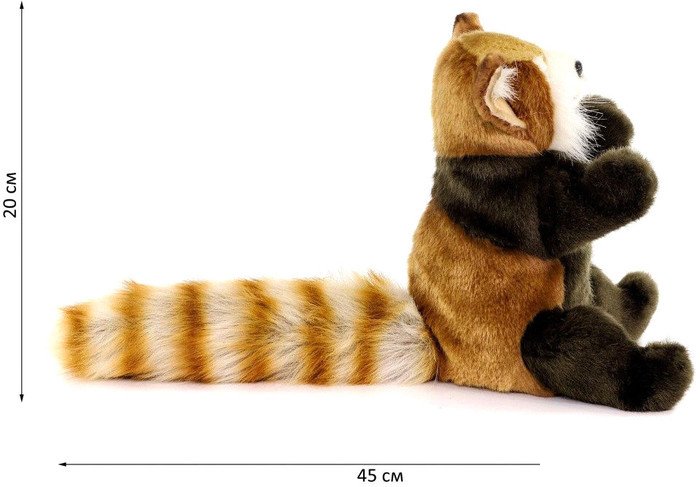 | Информация | Мягкая игрушка на руку Красная панда. Оживает от малейшего движения пальцев! Очаровательный пушистый зверек вызывает умиление, смех, желание потискать его, поиграть и как следует рассмотреть, ведь игрушка максимально похожа на настоящее животное. Привьет детям интерес к творчеству и любовь к живой природе. Незаменима в домашнем театре. Длина игрушки от ушек до кончика хвоста 49 см., размах лапок 20см. Красная панда. Млекопитающее из семейства пандовых подотряда псообразных. Питается растительностью. Размером немного крупнее кошки. Длина тела 51 - 64 см, хвоста 28 - 48 см. Самцы весят около 3,7 - 6,2 кг, самки 4,2 - 6,0 кг. Мех малой панды сверху рыжего или орехового цвета, снизу тёмный, почти чёрный. У волос на спине жёлтые кончики. Голова светлая, края ушей и мордочка белые, а около глаз рисунок в виде маски, причём этот рисунок уникален для каждой отдельной особи. Это чудесный камуфляж для животного, проводящего большую часть времени на деревьях, покрытых мхами и лишайниками.Слоган «Ханса - образ природы» полностью отражает миссию бренда. Образы бренда HANSA Creation воодушевляют на изучение мира животных, их повадок, среды обитания, а также напоминают о необходимости защиты нашей природы. HANSA Creation сотрудничает с крупнейшими фондами охраны природы, такими как WWF, РГО, природными заповедниками Африки, сохраняя в игрушках образы редких и исчезающих животных. Компания вносит свой вклад в поддержание экологии окружающей среды, используя для набивки игрушек пищевой пластик повторной переработки. В ассортименте мягких игрушек бренда ХАНСА Криэйшен более 500 образов размером от 7 см до 4,5 м, выполненных в масштабе или в натуральную величину life size. Соберите тематическую коллекцию животных России или любого континента, игрушки на руку для малышей, или составьте интерьерную композицию. Мягкая игрушка из раздела - Медведи и панды |