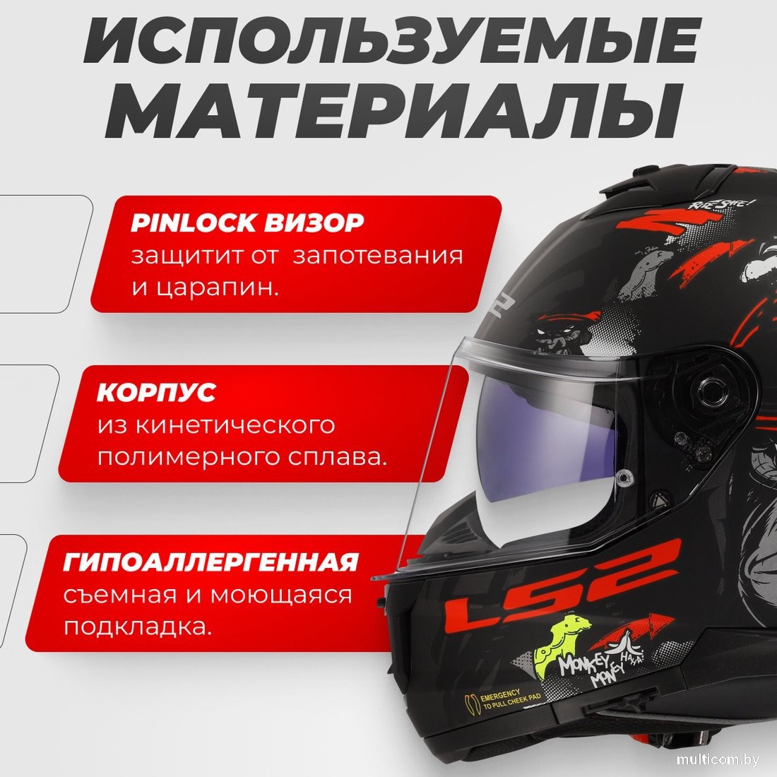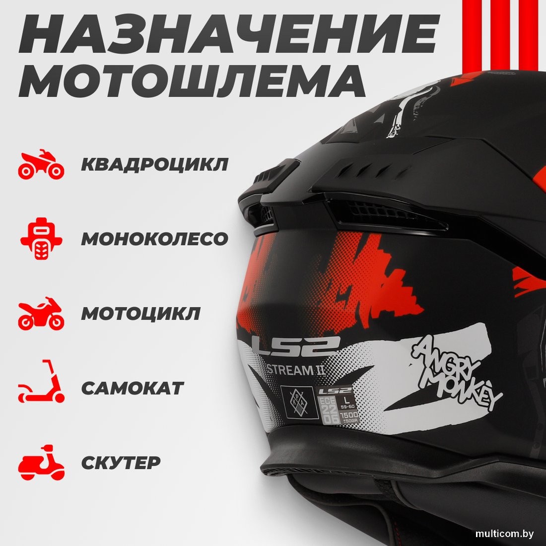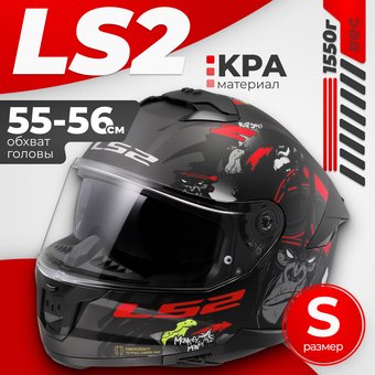 LS2 FF808 Stream 2 Angry Monkey (S, черный матовый/красный)