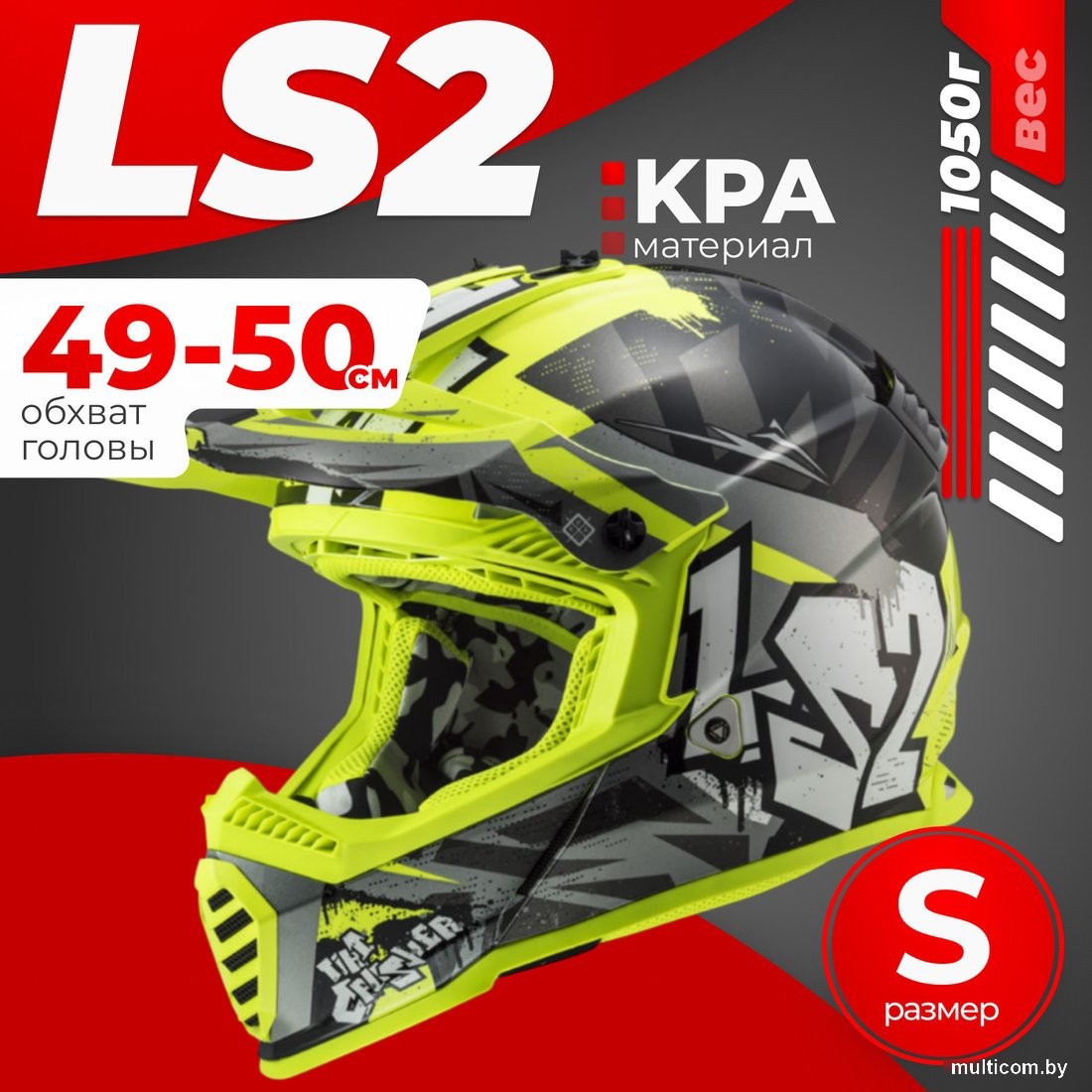 LS2 MX437 Fast 2 Mini Crusher (S, черный/желтый)