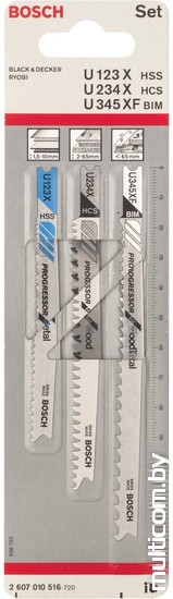 | Информация | Набор пилок Bosch STS Progressor U-образный хвостовик:- U 123 X - для металла- U 234 X - для дерева- U 345 XF - для дерева и металла |