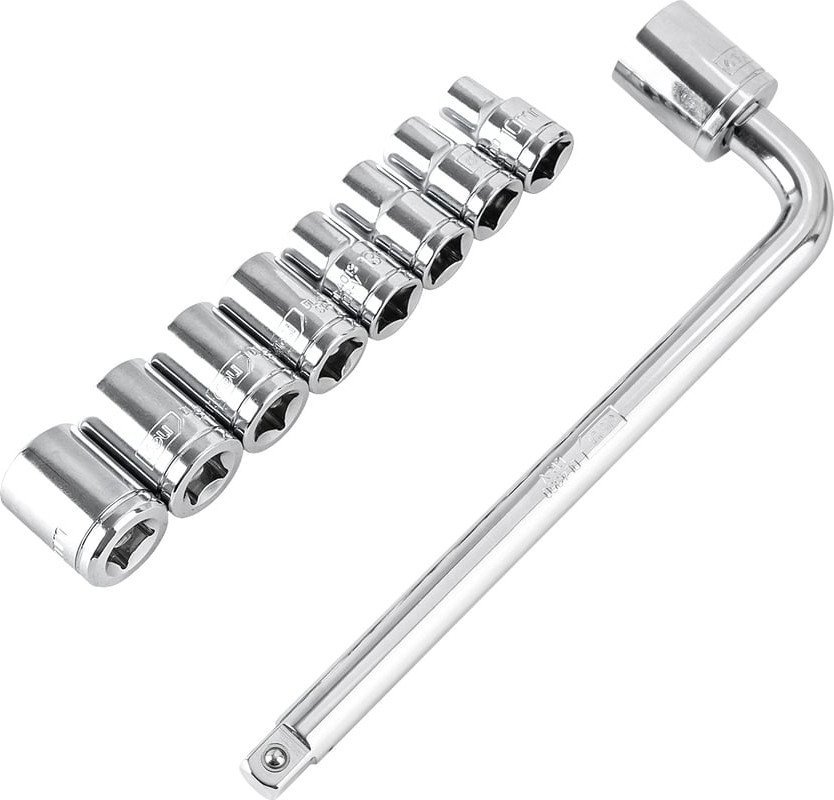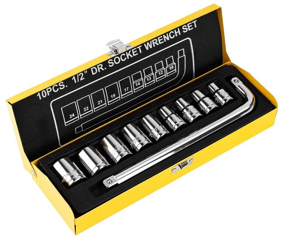 | Комплектация | Металлический кейс Вороток 250 мм Торцевые головки: 10, 12, 13, 14, 17, 19, 21, 22, 24 мм |