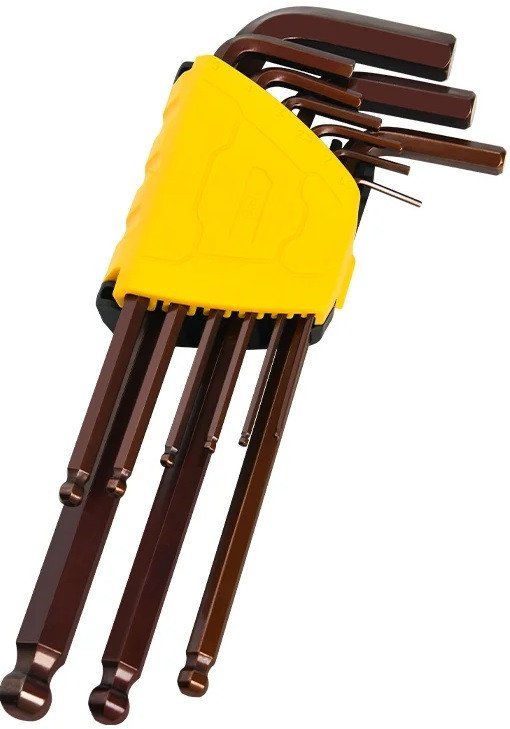 | Комплектация | Шестигранные ключи с шаровым наконечником - 9шт Пластиковый держатель Блистерная упаковка |