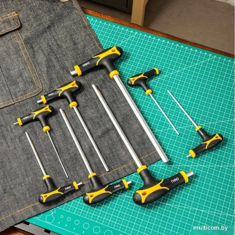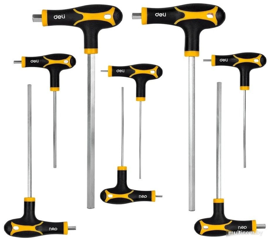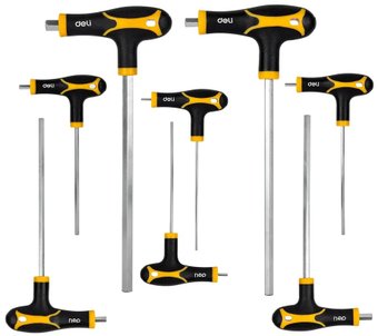 | Информация | Набор шестигранных ключей DELI DL233108 98338 используется для работ с шестигранным крепежом. Ключи выполнены в Т-образной форме, оснащены удлинённым хвостовиком c шаровым наконечником для работы в самых труднодоступных местах. Двухкомпонентная ручка удобно лежит в руке, а благодаря своей эргономичной форме уменьшает усталость рук при работе с инструментом. Шестигранники изготовлены из высококачественной хромованадиевой стали. Материал отличается высокой прочностью и долговечностью. |