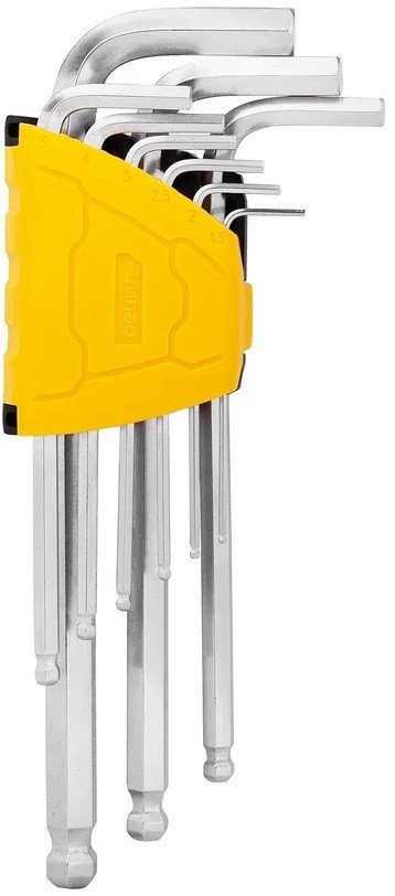 | Информация | Набор шестигранных ключей DELI DL3088 с шаром 98334 используется для работ с шестигранным крепежом. Ключи изготовлены из высококачественной хромованадиевой стали, что обеспечивает прочность и долговечность. Шаровой наконечник служит для удобной работы в ограниченном пространстве. Удобная пластиковая рамка облегчает хранение и переноску шестигранных ключей. |