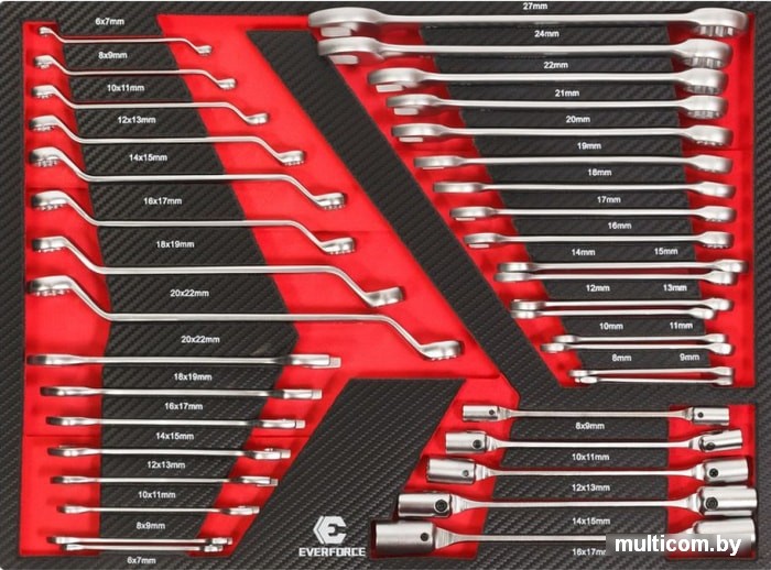 | Комплектация | торцовые шарнирные: 8-17 мм., рожковые: 6-22 мм., накидные: 6-22 мм., комбинированные: 8-27 мм. |