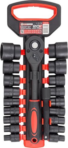 | Комплектация | трещотка (1 шт.), головки (18 шт.), удлинитель (1 шт.), пластиковый держатель (1 шт.) |