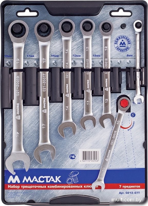 | Комплектация | ключ комбинированный с трещоткой 8, 10, 12, 13, 14, 17, 19 мм |