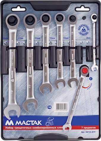 | Информация | ??Текст описания составлен при помощи искусственного интеллекта. - Набор комбинированных трещоточных ключей МАСТАК 0213-07T — это идеальное решение для профессионалов и любителей, которые ценят качество и удобство в работе. С размерным диапазоном от 8 до 19 мм, этот набор включает в себя 7 ключей, которые помогут вам легко справляться с монтажом и демонтажом крепёжных узлов. - Специальный изгиб в 15° позволяет работать в ограниченных пространствах, что делает эти ключи незаменимыми в труднодоступных местах. Шаг трещотки в 5° (72 зубца) обеспечивает плавное и точное вращение, а 12-тигранный профиль накидной части универсален для работы с различными головками болтов и гайками. - Хромированное покрытие ключей защищает их от коррозии и придаёт стильный матовый оттенок, что не только улучшает внешний вид, но и увеличивает срок службы инструмента. Ключи удобно лежат в руке, что добавляет уверенности в процессе работы. - Не забывайте, что качественный инструмент — это залог успешного выполнения задач. Ключи удобно размещены на пластиковом держателе, что позволяет легко организовать и хранить их. - Набор комбинированных трещоточных ключей МАСТАК 0213-07T — это отличный выбор для СТО, автосервисов, промышленных предприятий и для домашнего использования. МАСТАК — ты знаешь как! |