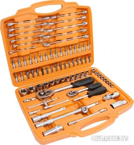 | Комплектация | 1/2"- 12 головок шестигранных: 8/10/12/13/14/15/16/17/18/19/22/24мм;- 2 головки свечные шестигранные: 16/21мм;- ключ трещоточный 250мм, 24 зуба;- 2 удлинителя: 125/250мм;- переходник шарнирный;- переходник 3/8"" мама x 1/2"" папа с отверстием под вороток;- переходник под насадки 5/16"";1/4"- 7 головок шестигранных: 7/8/9/10/11/12/13мм;- 18 головок-насадок: 3-SL:4/5.5/6.5; 2-PH:1/2; 2-PZ:1/2; 4-HEX:3/4/5/6; 7-TX:T8/T10/T15/T20/T25/T30/T40;- ключ трещоточный 150мм, 24 зуба;- 2 удлинителя: 50/100мм;- удлинитель гибкий 150мм;- переходник шарнирный;- вороток T-образный 125мм;- рукоятка отверточная 150мм;- 15 насадок 5/16”х30мм: 3-SL:8/10/12; 2-PH:3/4; 2-PZ:3/4; 4-HEX:8/10/12/14; 4-TX:T40/T45/T50/T55;- 11 ключей комбинированных: 8/10/11/12/13/14/15/16/17/18/19мм. |