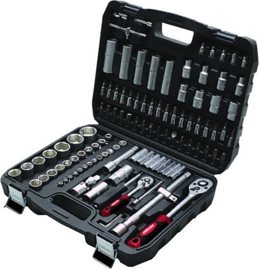 | Комплектация | головки 1/4” короткие 25 мм 4, 4.5, 5, 5.5, 6, 7, 8, 9, 10, 11, 12, 13, 14 ммголовки 1/4” глубокие 50 мм 6, 7, 8, 9, 10, 11, 12, 13 ммголовки 1/4” Е-профиль короткие 25 мм Е4, Е5, Е6, Е7, Е8головки-биты 1/4” HEX 35 мм 3, 4, 5, 6 ммголовки-биты 1/4” TORX 35 мм T8, T10, T15, T20, T25, Т27, T30головки-биты 1/4” SL 35 мм 4, 5.5, 6.5 ммголовки-биты 1/4” РН 35 мм РН.1, РН.2головки-биты 1/4” PZ 35 мм PZ.1, PZ.2трещотка 1/4” рукоятка 1/4” 150 ммвороток Т-образный 1/4” 115 ммудлинители 1/4” 50, 100 ммкардан шарнирный 1/4” биты 5/16” HEX 30 мм 5, 7, 8, 10, 12 ммбиты 5/16” TORX 30 мм T35, T40, T45, T50, T55биты 5/16” SL 30 мм 8, 10, 12 ммбиты 5/16” PH 30 мм PH.3, PH.4биты 5/16” PZ 30 мм PZ.3, PZ.4головки 1/2” короткие 38 мм 10, 11, 12, 13, 14, 15, 16, 17, 18, 19, 20, 21, 22, 24, 27, 30, 32 ммголовки 1/2" глубокие 77 мм 14, 15, 17, 19, 22 мм;головки 1/2" Е-профиль короткие 38 мм Е10, Е11, Е12, Е14, Е16, Е18, Е20, Е24головки свечные 1/2" 16, 21 ммтрещотка 1/2"удлинители 1/2" 125, 250 ммкардан шарнирный 1/2"адаптер с отверстием с 3/8"(F)*1/2"(M)битодержатель 1/2"(F)*5/16"(F)ключи Г-образные 6-гранные короткие 1.5, 2, 2.5 мм |