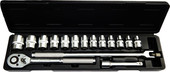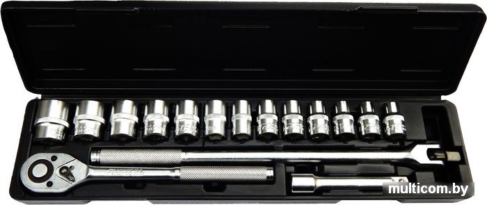 | Комплектация | - Головка 12-граней 1/2" (L-38mml) 10, 11, 12, 13, 14, 15, 17, 19, 21, 22, 24, 26, 27мм- Трещотка реверсивная 1/2"- Вороток шарнирный 1/2" 380мм- Удлинитель 1/2" 100мм |